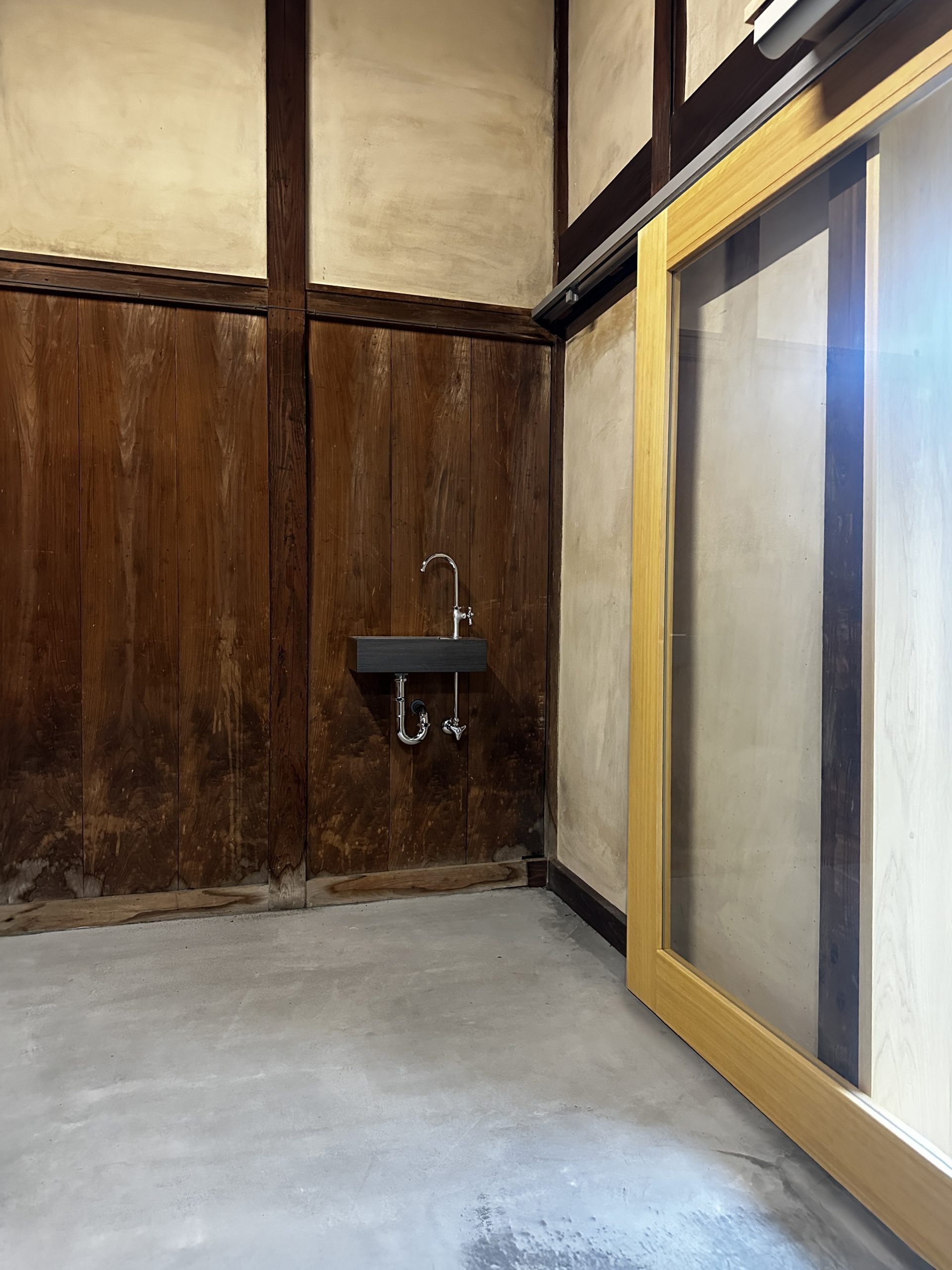 正面入口には幅1.5mの大きなガラス引戸を採用し、訪れる人にとっての入りやすさと視認性を高めた。古民家ならではの趣を生かすことで、地域の新しい交流拠点となるような印象づくりを目指した。